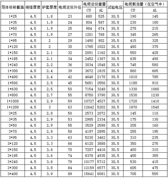 高壓電纜載流量對照表(以10KV高壓電纜為例)
